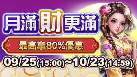 2025.10.09 【儲值】月滿財更滿~最高拿80%優惠!