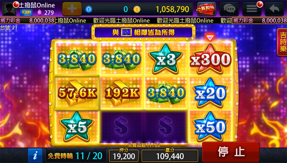 贏分以獎圖贏分總和乘上倍數總和計算。