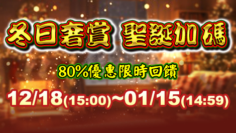 2025.12.24 【儲值】冬日奢賞.聖誕加碼~80%優惠限時回饋!